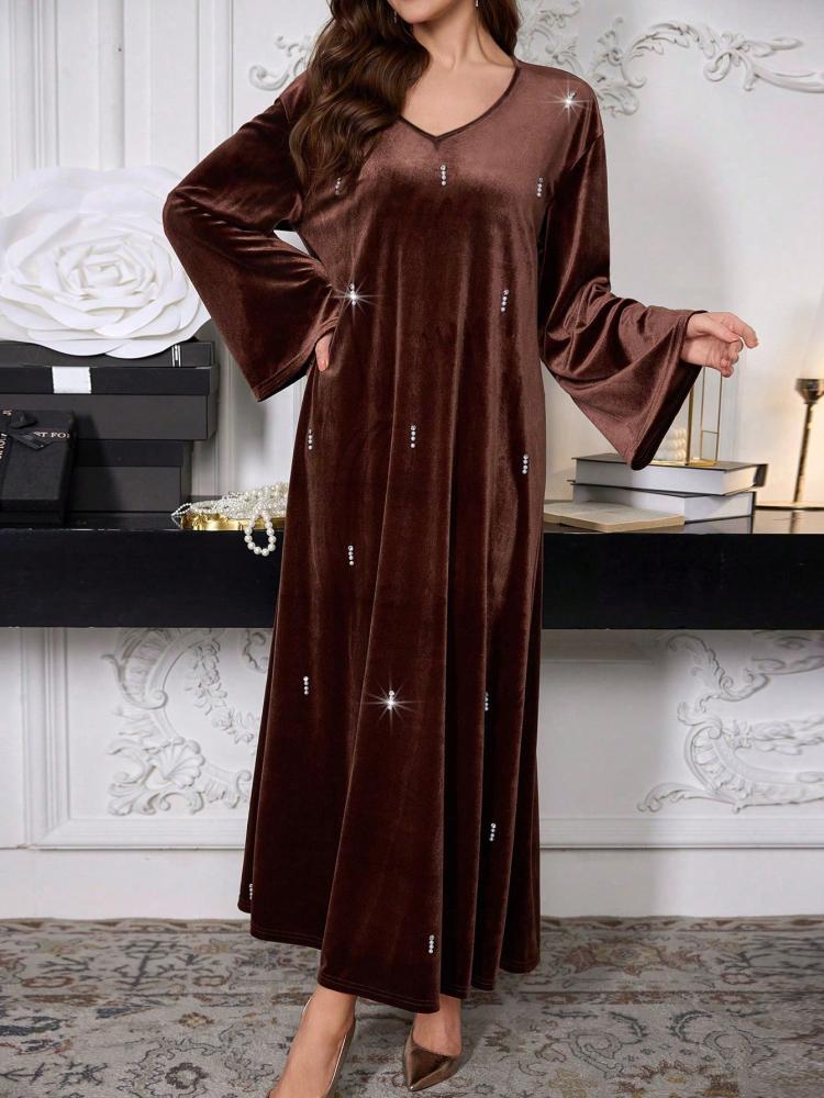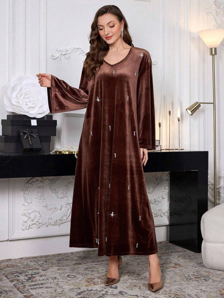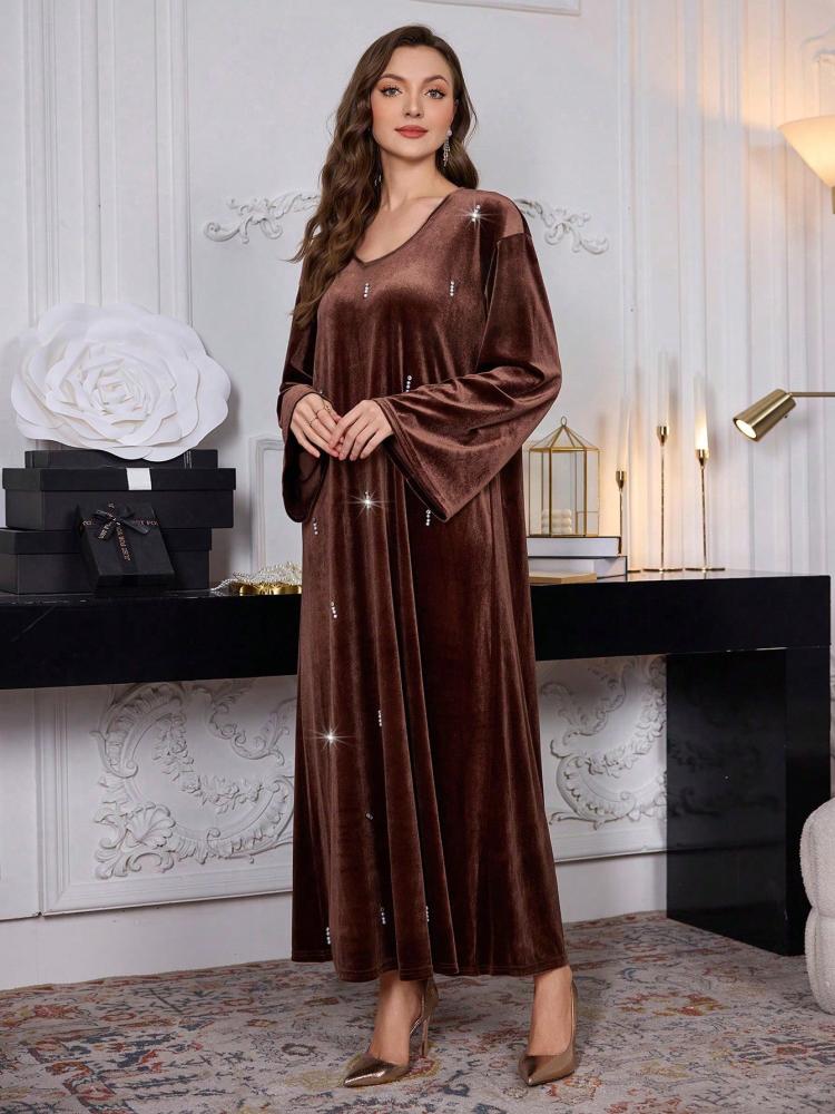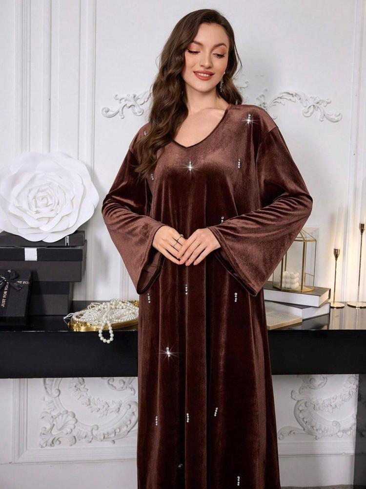 - الخامة: قماش فاخر وانسيابي (مثل الحرير، الشيفون، المخمل - يرجى مراجعة تفاصيل الخامة المحددة)