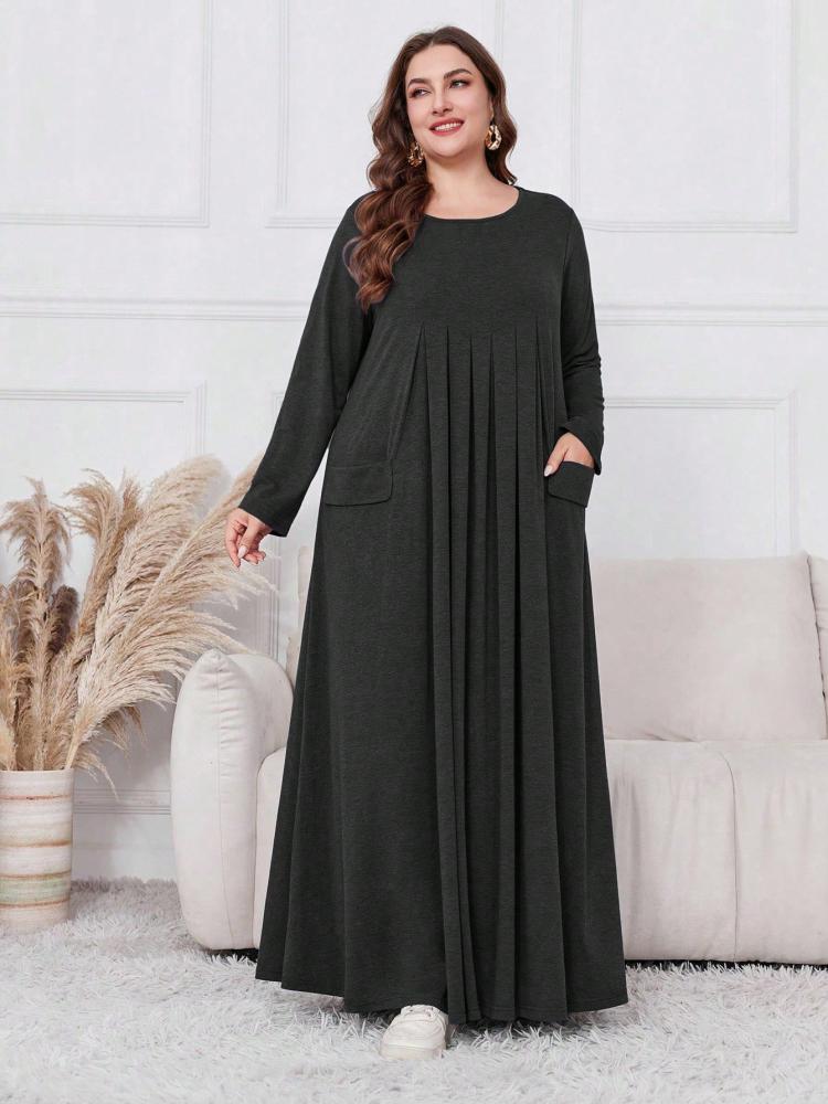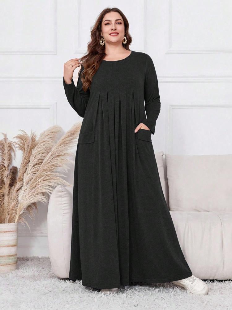 تفاصيل فستان كاجوال طويل مع جيوب: